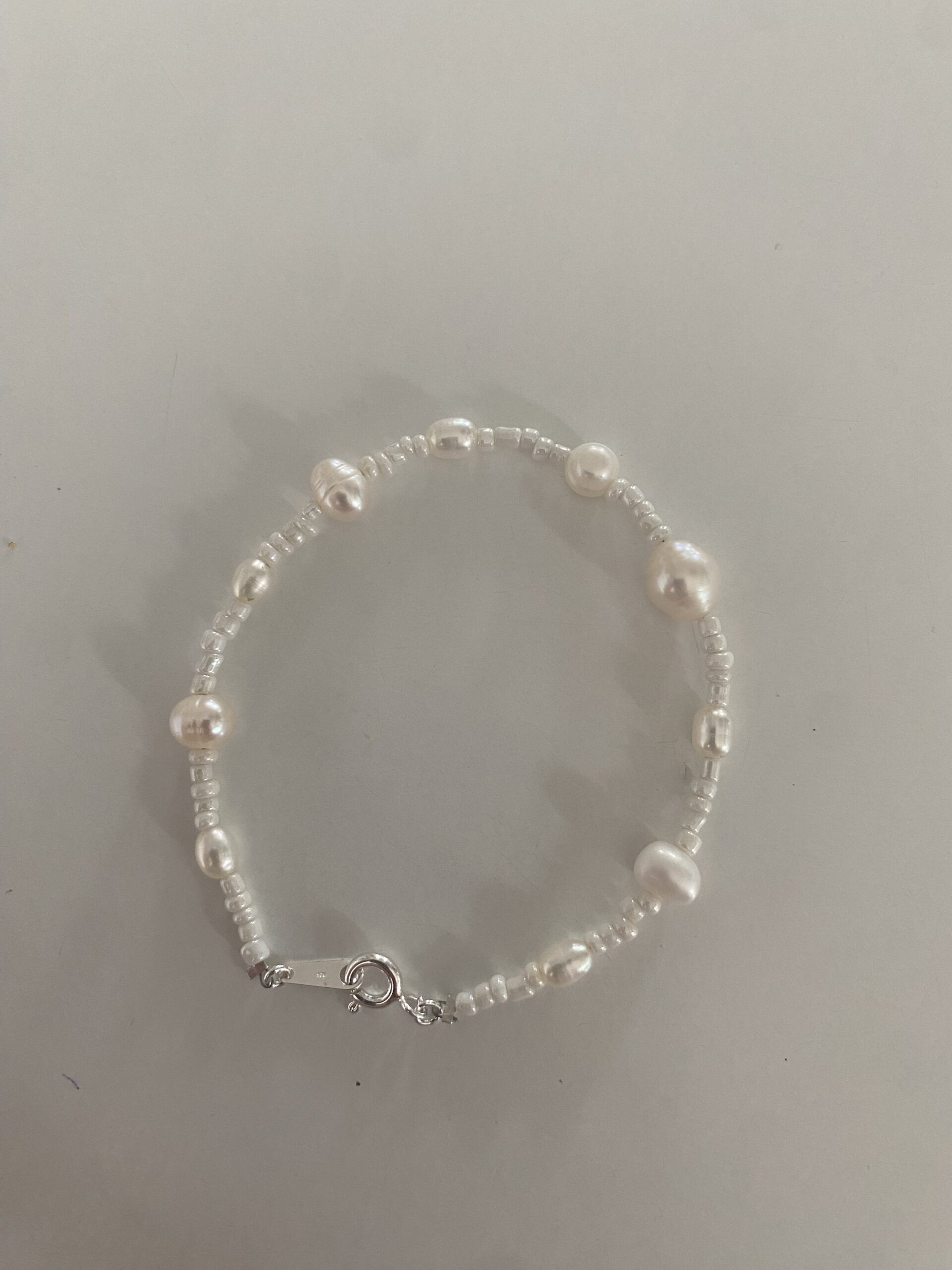 Armbånd med beige ferskvandsperler og forskellige størrelser ferskvandsperler